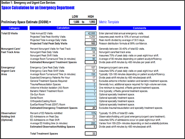 The workload calculation validation will result in the procedural and treatment spaces needs such as number of operating theaters, ICU beds, Inpatient bed per specialty, emergency, procedural and treatment spaces…